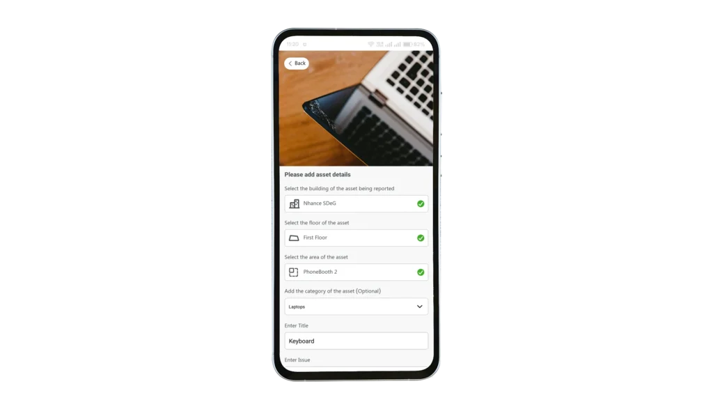 Log issues via app, web, QR code, or email for instant capture.
